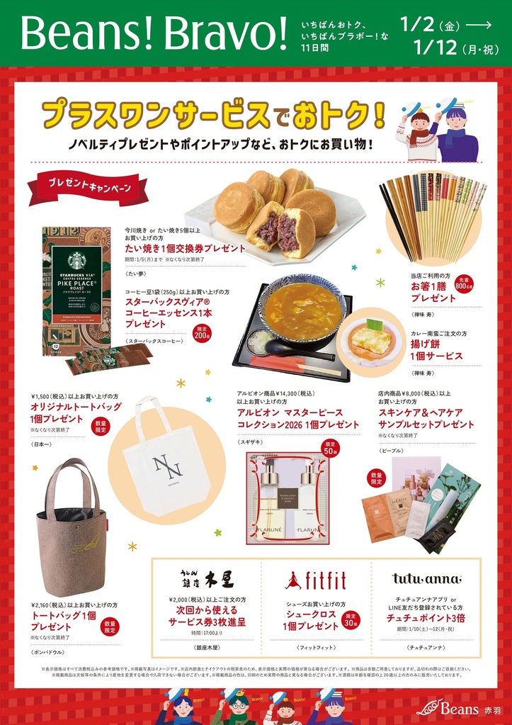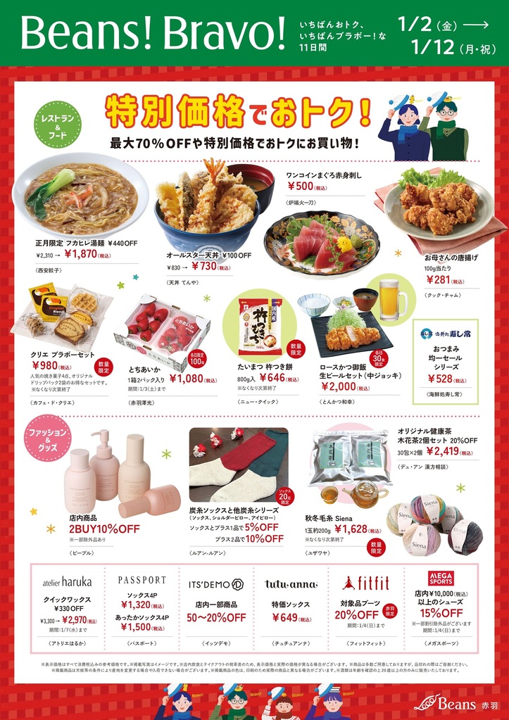 Beans! Bravo!いちばんおトク、いちばんブラボーな11日間|ビーンズ赤羽 | JR埼京線・京浜東北線・高崎線・東北本線「赤羽駅」直結のショッピングセンター