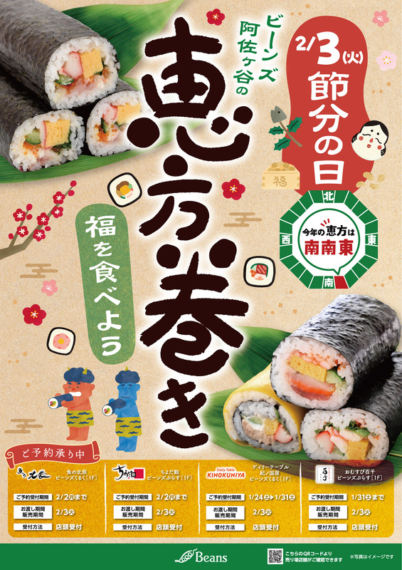 トピックス 恵方巻のご予約を承ります!! 今年の恵方は南南東 ビーンズでは恵方巻のご予約を承ります✨当日は大変混雑が予想されます。詳細は各ショップでご確認ください。お客さまのご予約をお待ちしています✨ tweetする Facebookでシェアする LINEで送る