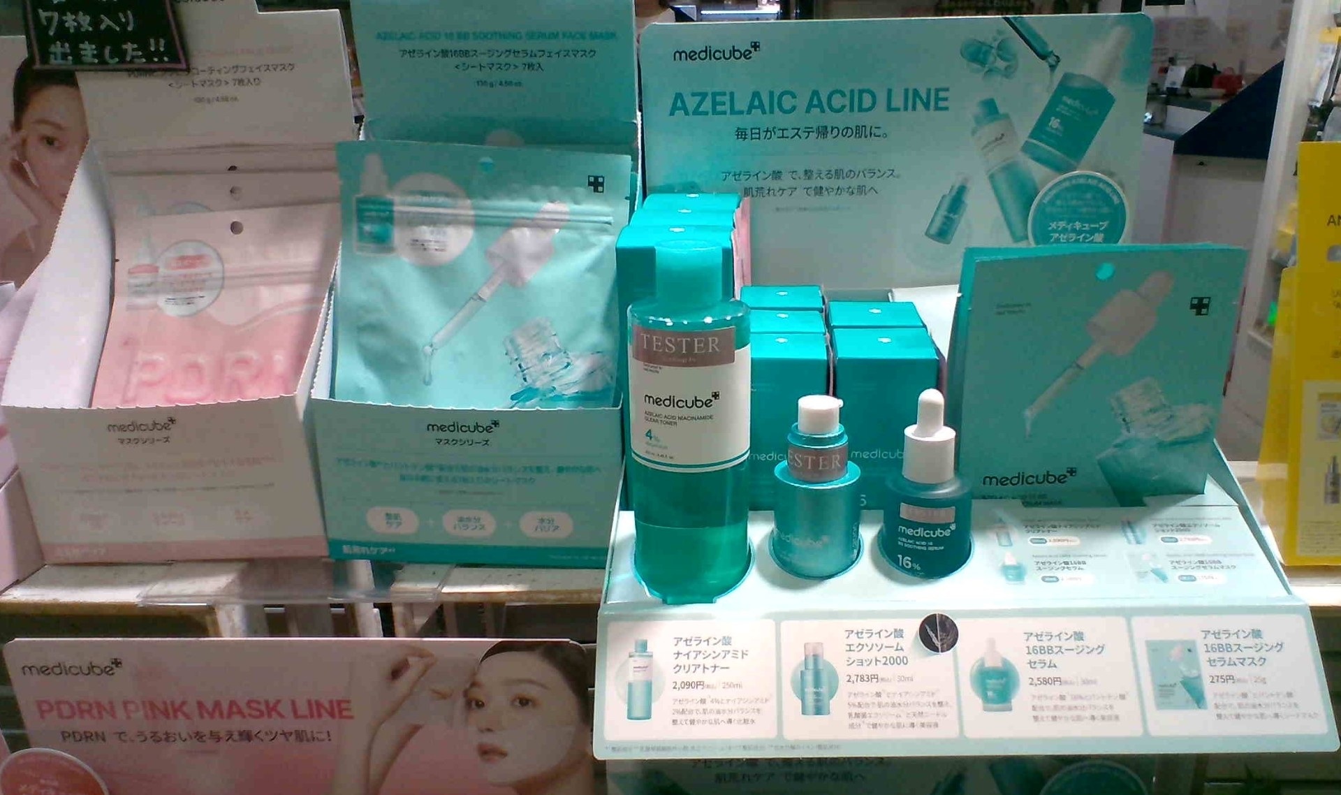 お肌を健やかに整え明るい肌に導いてくれる化粧水や肌トラブルをケアしてくれるセラム、ブースターとしても使えるエクソソームショット、デイリーに使えるシートマスクなどいつものスキンケアにプラスで使える『メディキューブ アゼライン酸シリーズ』をぜひ店頭でお試しください!