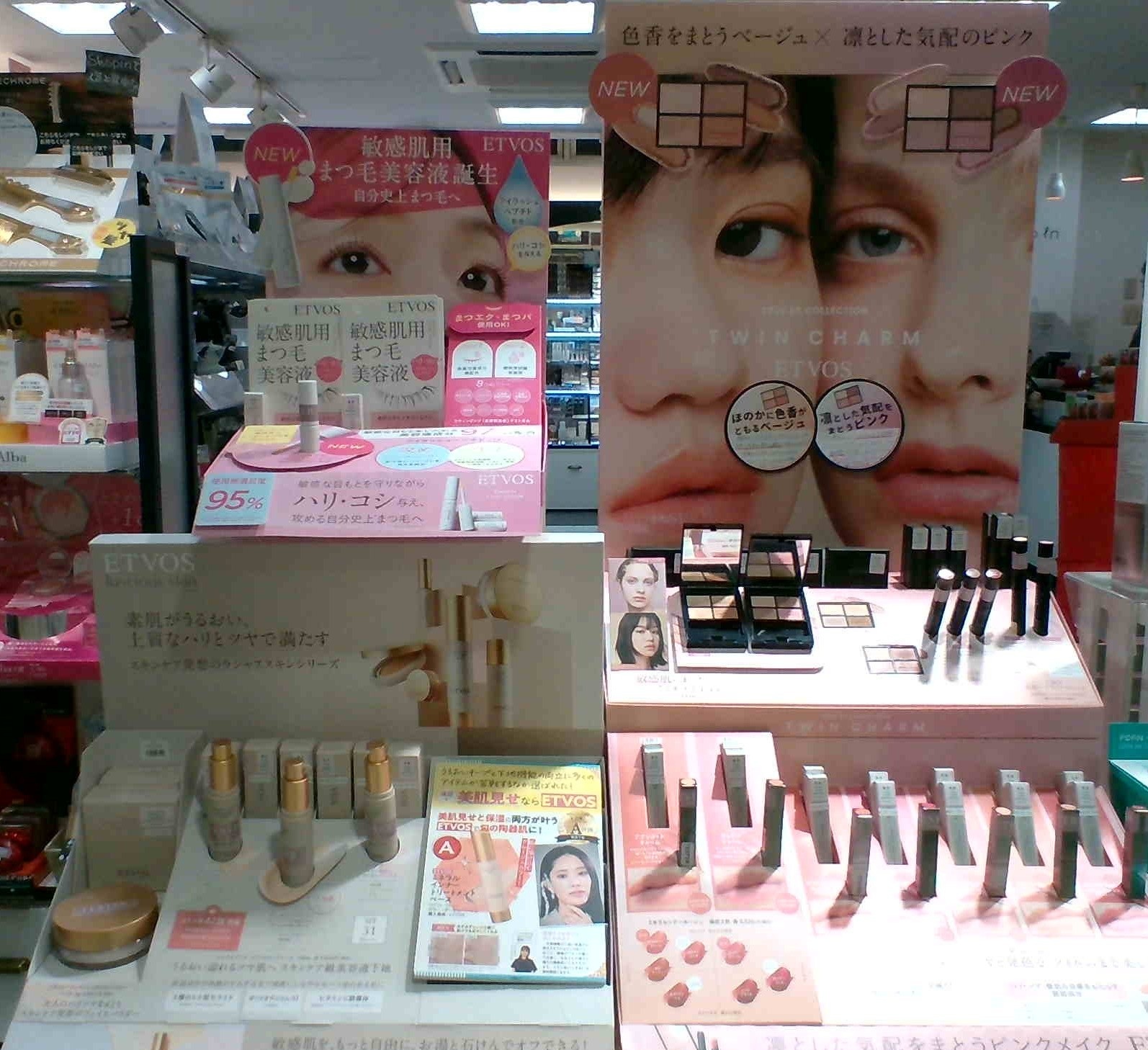 敏感肌の方でも安心してお使いいただけるETVOSから春らしいカラーのアイテムが発売です✨ 今回はまつ毛美容液まで!!肌タイプ問わずに使いやすいカラー展開となっております。 リップ、アイシャドウどれも可愛いので店頭のテスターで お試しくださいませ💓ご来店お待ちしております。