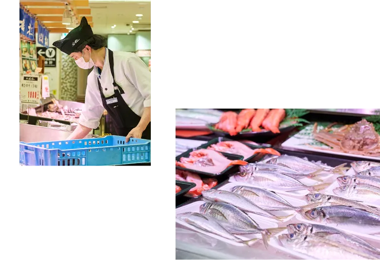 売場を見たお客様の「初めて見るね」「食べてみたいね」といった会話から、魚の旬や特徴をご紹介し、海の恵みを深く味わえる上質な水産体験をご提供します。