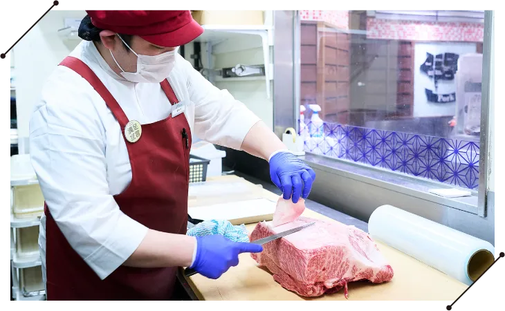 熟練の職人が、お肉を種類・部位に合わせて丁寧にカット。肉の特徴に合わせた最適な切り方で、美味しさを引き出します。