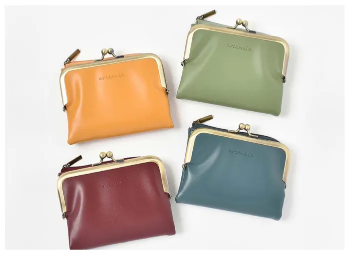見やすいがま口の小銭入れに加え、ファスナー付きポケットも付いているので使いやすさ抜群。