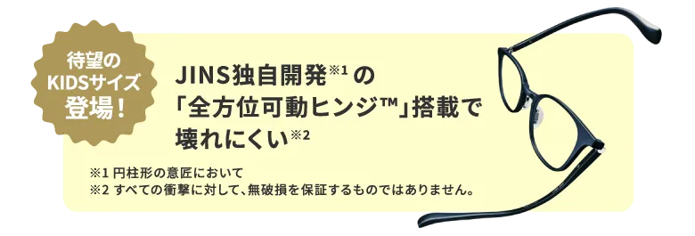 JINS史上、最も壊れにくいメガネ「JINS360°」。約150㎏の耐荷重試験と「JIS B 7285:2016」に基づくテンプル回転試験10万回で壊れにくさを実証。