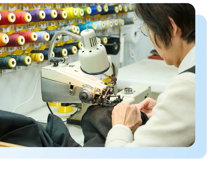 ほつれやサイズ直し、丈詰めはもちろんデザイン変更やリメイクまで、1点1点ていねいに仕上げます。