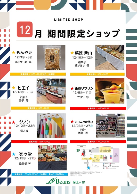 12月 期間限定ショップのご案内|トピックス|ビーンズ保土ヶ谷 | JR横須賀線「保土ケ谷駅」直結のショッピングセンター