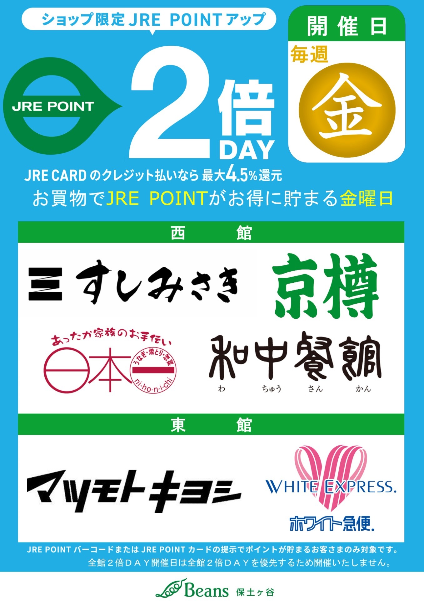 【毎週金曜日】6ショップ限定 JRE POINT2倍