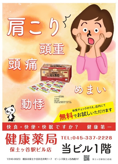 ショップニュース 掲載日:2026-02-09 快食・快便・快眠ですか?あなたの健康を第一に考える『健康薬局』 体質チェックのうえ、店内にて無料でお試しいただけます 健康薬局 漢方薬 肩こり・頭痛・めまい 0 tweetする Facebookでシェアする LINEで送る 健康薬局のショップページへ戻る