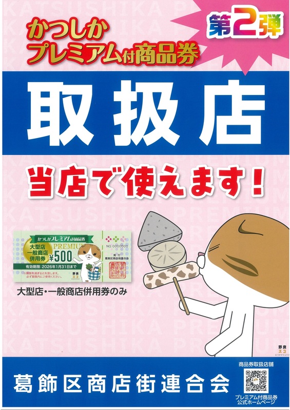 【かつしかプレミアム付商品券 第2弾】がご利用頂けます。