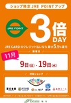11月は9日(日)、19日(水)、の2日間がJRE POINTが3倍!