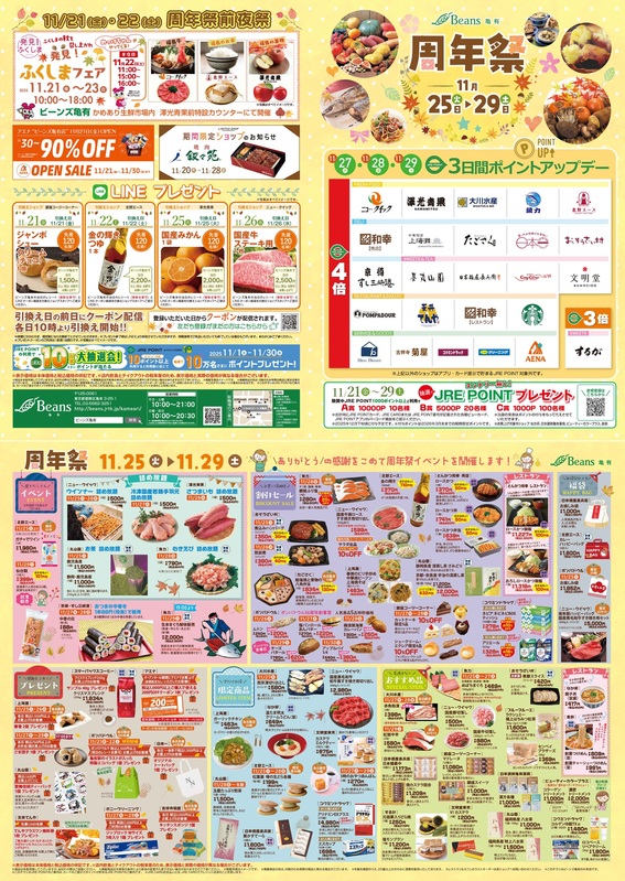 11/25(火)~11/29(土)まで、ビーンズ亀有周年祭を開催します!!