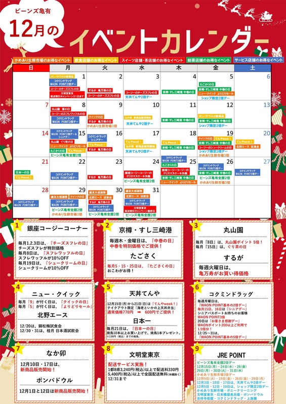 ビーンズ亀有の『12月号イベントカレンダー』でお得な情報をチェック!
