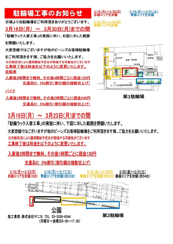 ■第1駐輪場工事期間:3月16日(月)~3月30日(月)まで
