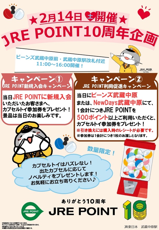 JRE POINT 10周年企画!|トピックス|ビーンズ武蔵中原 | JR南武線「武蔵中原駅」直結のショッピングセンター