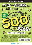 トピックス オフピーク定期券deお買いものキャンペーン 抽選で500ポイントあたる! 期間中、シャポー・ビーンズで、JRE POINT WEBサイトに登録した オフピーク定期券(Suica・モバイルSuica)にて合計2,000(税込)以上 お買いものいただくと、抽選で500名さまにJRE POINT 500ポイントプレゼント! 詳しくはコチラ tweetする Facebookでシェアする LINEで送る