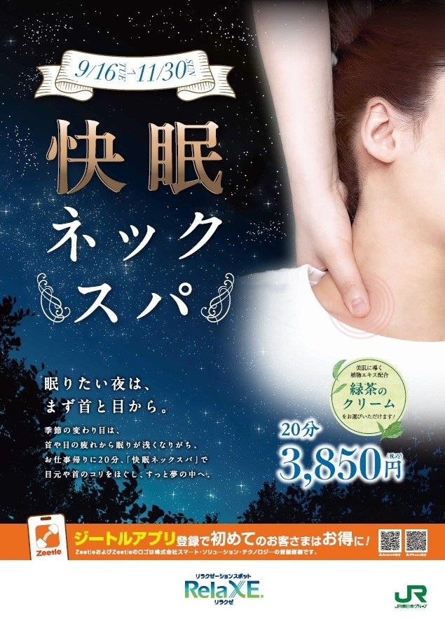 いつもリラクゼメイト武蔵浦和店をご利用いただき ありがとうございます♪ 季節限定コースのご案内です! 「快眠ネックスパ」 9/16(火)~11/30(日)まで実施中です!! 季節の変わり目は、カラダの疲れから眠りが浅くなりがち。 目元や首のコリをほぐして、ゆったりリラックスを…✨ ・首周りにハリ、コリを感じる… ・首が動かしずらい ・目の疲れが気になる などのお客様に是非受けていただきたいコースです。 お時間は、20分でご用意しております! 20分 3,850円(税込) 首をほぐす際には、クリームを使用して流していきます。 快眠ネックスパ限定で“緑茶のクリーム”もお選びいただけます🌿 他のコースとの組み合わせも可能です! 首が辛い方は、整体との組み合わせが おすすめになっております! ご予約は 電話予約:0570-005-151 または、web予約、直接店舗で予約ができます。 皆さまのご来店、スタッフ一同心よりお待ちしております♪