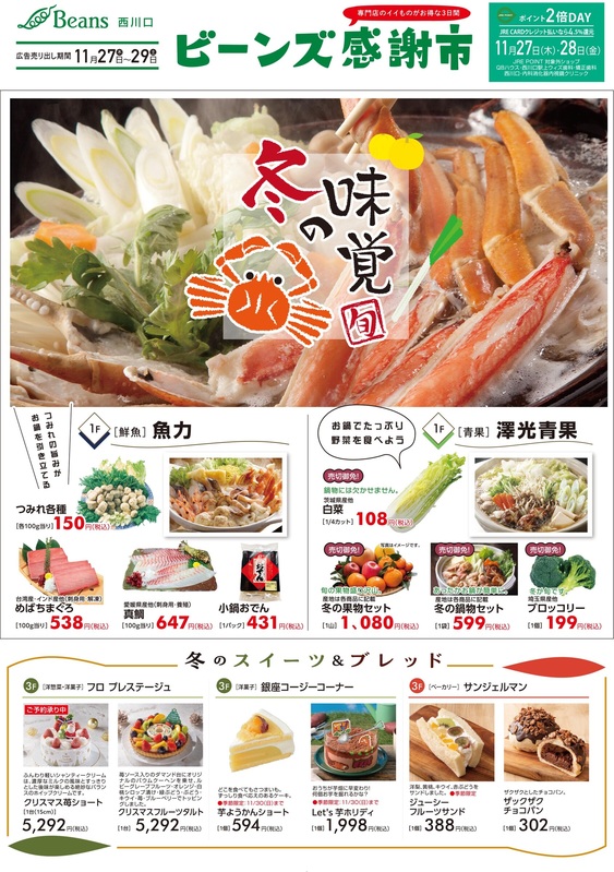 11月27日(木)から11月29日(土)の3日間はビーンズ感謝市を開催!