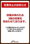 トピックス 臨時休業のお知らせ 設備点検の為、3階フロアを臨時休業いたします。 設備点検のため3階の営業を見合わせております。 お客様には大変ご不便をおかけいたしますがご了承くださいますようお願い申し上げます。 tweetする Facebookでシェアする LINEで送る