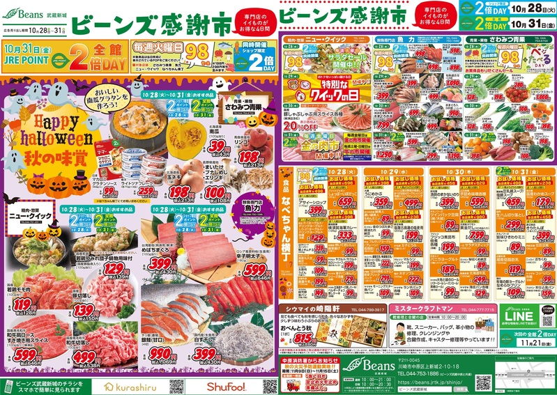 トピックス Happy Halloween 秋の味覚 Happy Halloween!!秋の味覚をビーンズ武蔵新城で楽しみませんか?みなさまぜひお越しください tweetする Facebookでシェアする LINEで送る