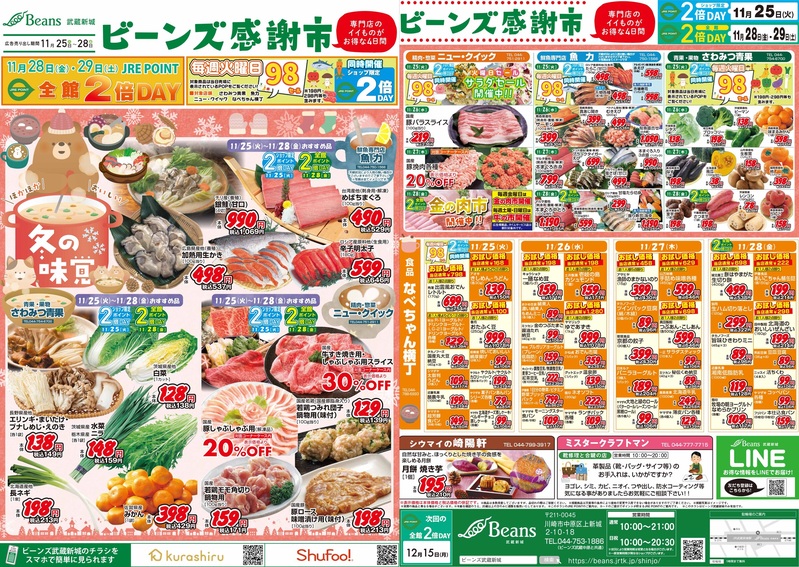 ビーンズ感謝市 冬の味覚フェア|トピックス|ビーンズ武蔵新城 | JR南武線「武蔵新城駅」直結のショッピングセンター