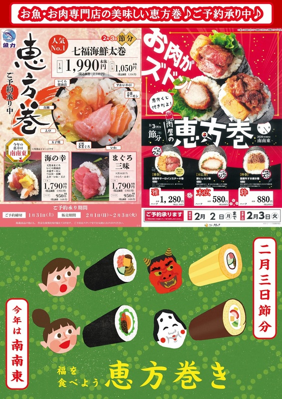 専門店の美味しい恵方巻♪|トピックス|ビーンズ武蔵新城 | JR南武線「武蔵新城駅」直結のショッピングセンター