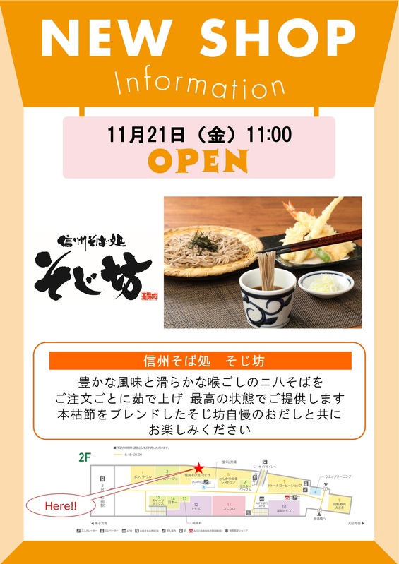 信州そば処そじ坊が11月21日(金)にオープンします!