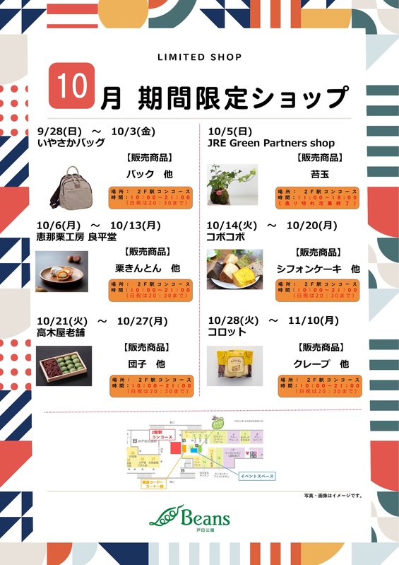 10月催事のご案内|トピックス|ビーンズ戸田公園 | JR埼京線「戸田公園駅」直結のショッピングセンター