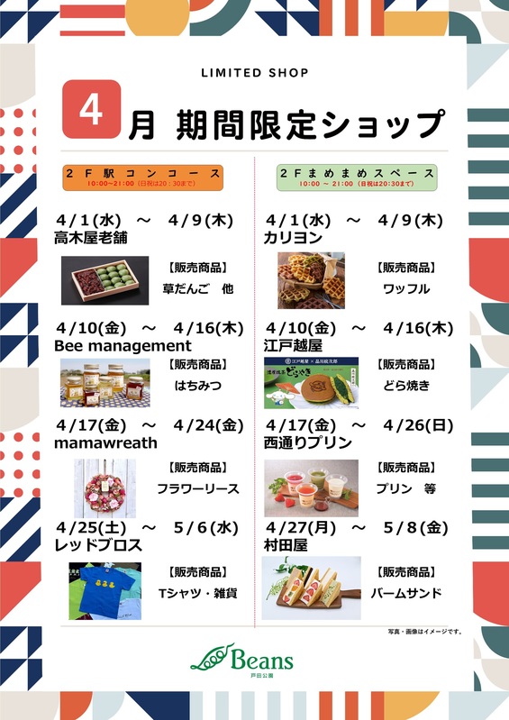 4月催事のご案内|トピックス|ビーンズ戸田公園 | JR埼京線「戸田公園駅」直結のショッピングセンター