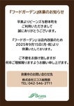 『フードガーデン』休業のお知らせ